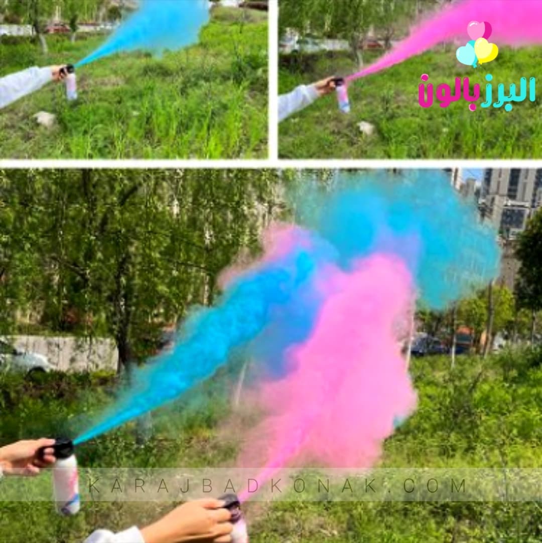این نوع اسپری معمولاً در جشنهای تعیین جنسیت نوزاد استفاده میشوند. این اسپریها برای اعلام جنسیت نوزاد به دوستان و خانوادهها در یک جشن خاص استفاده میشوند. این جشنها معمولاً در دوران بارداری حدوداً در هفته 18-20 برگزار میشوند و در آنها جنسیت نوزاد به مهمانان اعلام میشود.