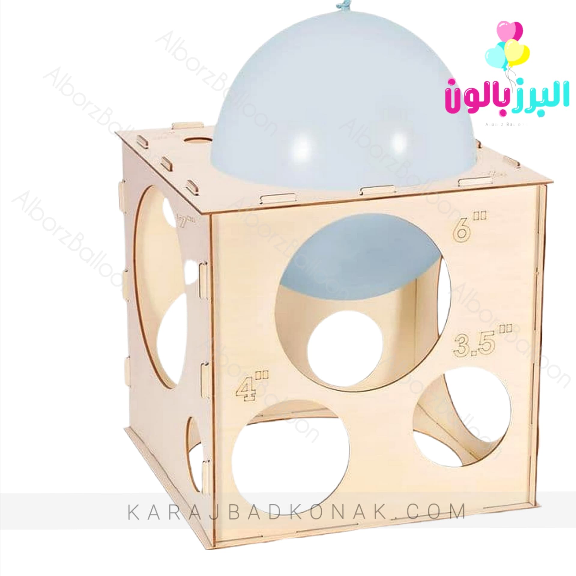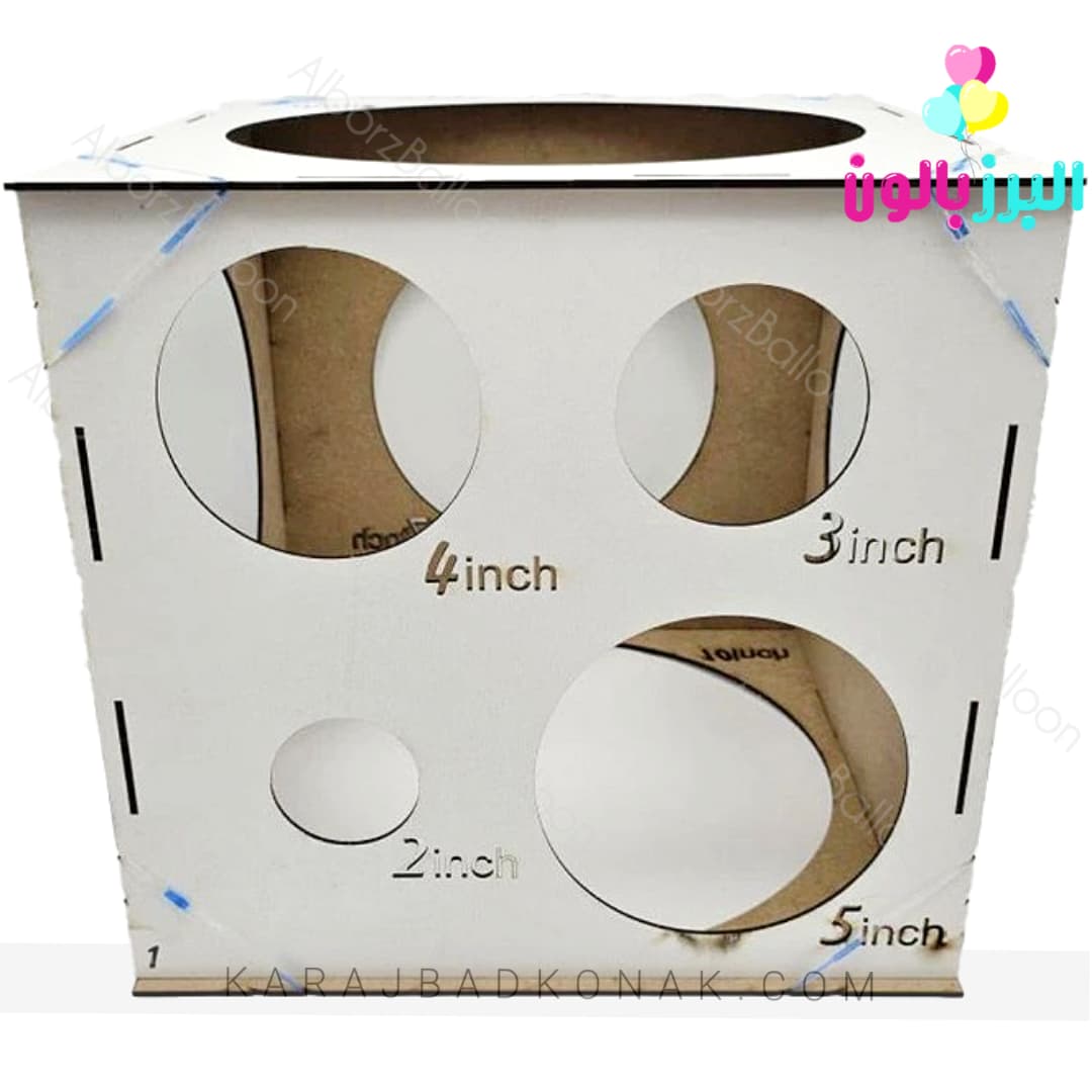 سایزر (Sizer) ابزاری است برای *تنظیم اندازهی دقیق بادکنکها* در هنگام باد کردن. این وسیله معمولاً بهصورت یک جعبهی چوبی با چندین *سوراخ در اندازههای مختلف* طراحی میشود. بادکنک پس از باد شدن از درون این سوراخها عبور داده میشود و زمانی که عبور آن بهسختی صورت گیرد، به این معناست که به اندازهی مورد نظر رسیده است.