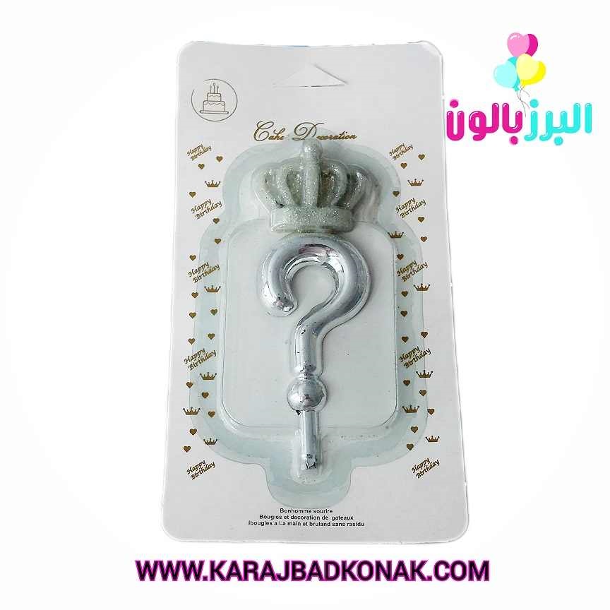 شمع تولد تاج علامت سوال رنگ نقره ای