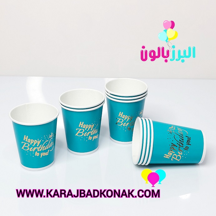 لیوان کاغذی طلاکوب رنگ آبی فیروزه ای 10عددی
