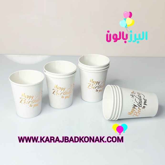 لیوان کاغذی طلاکوب رنگ سفید 10عددی