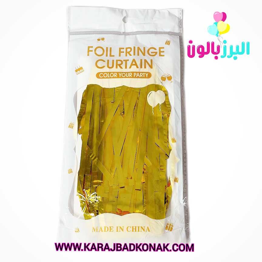 پرده متالایز طلایی با نام های؛ پرده طلایی براق، پرده ریش ریشی طلایی براق، آویز ریش ریشی طلایی تولد نیز معروف است.